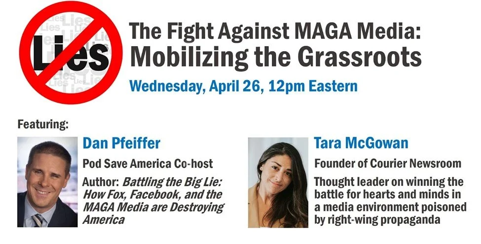 Join 31st Street Swing Left and partner co-sponsoring groups at this zoom event featuring Dan Pfeiffer and Tara McGowan. These thought leaders will introduce you to a growing number of smart media projects designed to reach priority voters to combat that disinformation.